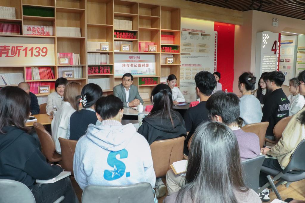 11月6日下午,由校学生会主办的“青听1139”系列活动第104期在校党建中心顺利举行。活动以“我与书记面对面”为主题,校党委书记朱坚应邀出席活动,并与来自各学院的学生代表亲切交流。