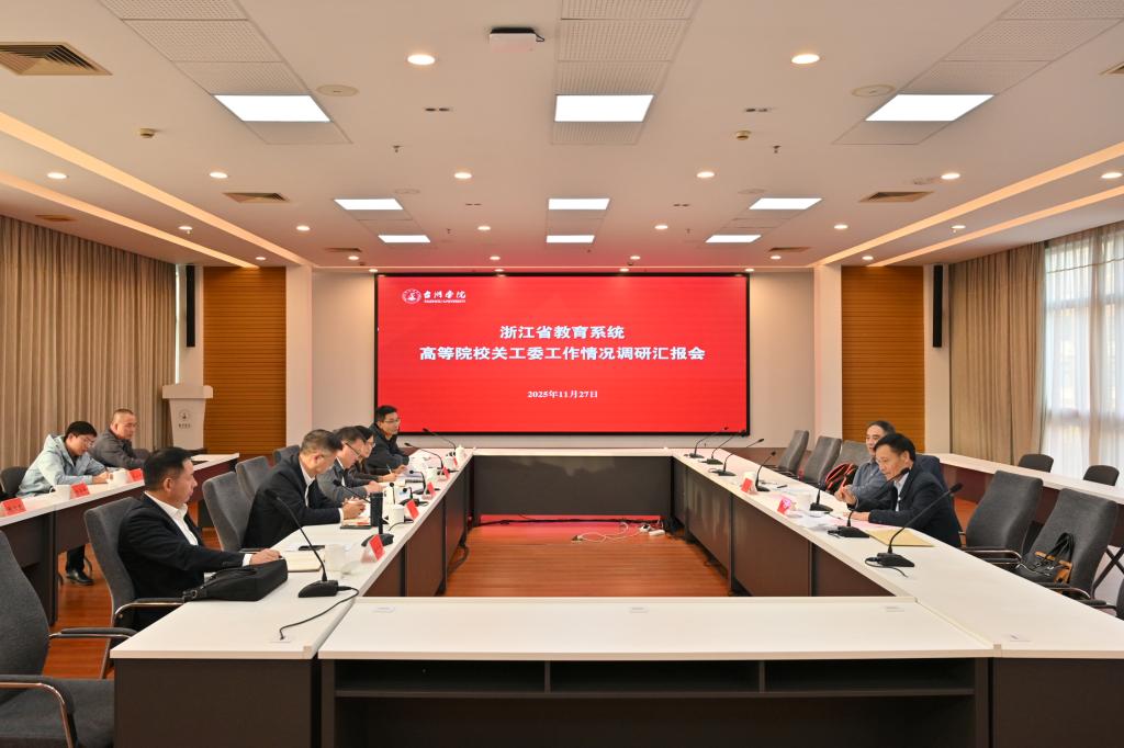 11月27日下午,省教育厅关工委副主任张志军、台州市教育局关工委常务副主任兼秘书长陈良玉一行专题调研台州高校“五好”关工委建设工作。校党委书记朱坚,校党委副书记、关工委主任丁一志,党委委员、组织部部长、关工委常务副主任吴银银接待张志军一行。台州职业技术学院、台州科技职业学院、浙江汽车职业技术学院、台州开放大学关工委负责人参加会议,陈良玉主持会议。