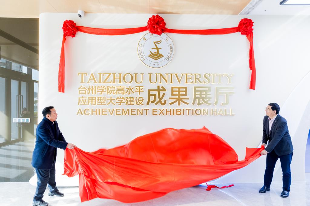 12月13日,台州学院高水平应用型大学建设成果展厅开展仪式隆重举行。校党委书记朱坚,校长、党委副书记乐传永为台州学院高水平应用型大学建设成果展厅揭牌。学校其他党政领导班子成员、机关职能部门负责人、二级学院党政负责人、附属医院与附属学校负责人、环科院负责人、各校友会分会代表、展厅建设参与人员代表参加仪式。副校长韩得满主持。
