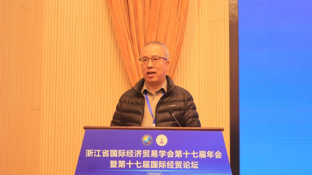 陈志成代表省商务厅对年会召开表示热烈祝贺。他介绍了全省商务系统深入学习贯彻党的二十届四中全会精神,围绕高水平对外开放和构建新发展格局,积极应对复杂严峻的国际经贸环境挑战,在稳外贸、强平台和促改革等方面取得的阶段性成效。同时,他也对浙江省国际经济贸易学会进一步强化成果转化和决策支撑功能,凝聚专家智慧、形成研究矩阵,持续产出高质量研究成果,更好服务“十五五”开放型经济发展提出了更高期望。