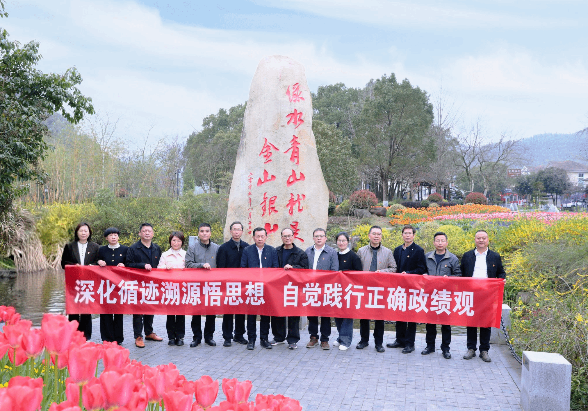 26日上午,考察组一行前往“绿水青山就是金山银山”理念发源地安吉县天荒坪镇余村,以校党委理论学习中心组现场研学的方式,开展树立和践行正确政绩观学习教育。在天荒坪镇和余村相关领导干部的陪同下,考察组深入了解余村从矿山经济到绿色发展的二十年转型蝶变历程。通过现场学习,考察组深刻感悟“两山”理念的真理力量,深化了对正确政绩观核心要义的理解,进一步坚定了为党育人、为国育才的初心使命,以务实举措推动学校高质量内涵式发展的信念。
