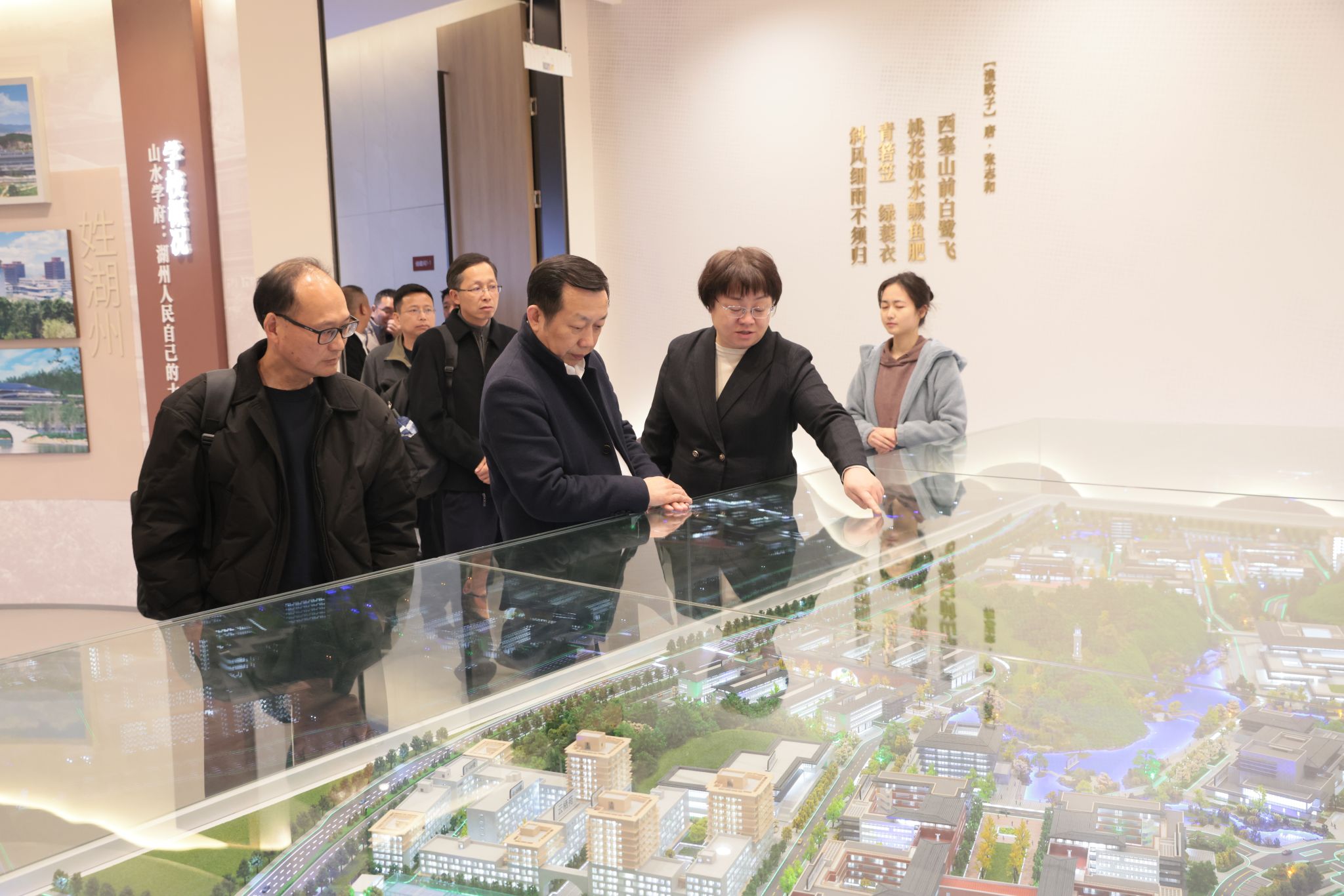 26日下午,考察组一行赴湖州学院考察交流。该校党委书记金波,校长、党委副书记李钧敏热情接待并陪同考察新校区。考察组走进党群服务中心、智慧教室管理中心、校史馆,深入了解学校应用型办学的实践成效。现代化教学场馆、智慧教学集群、实验实训平台等完善的硬件设施,给考察组留下了深刻印象。座谈中,李钧敏校长介绍了湖州学院的办学历史、发展定位、学科专业布局、人才队伍建设及应用型高校建设的实践成果,重点分享了学校紧扣湖州区域产业发展需求,构建特色学科体系、深化校地企协同育人、推进现代产业学院建设的创新举措。我校乐传永校长对湖州学院跨越式发展成果表示高度赞赏,希望两校深化学科建设、项目申报、人才培养等领域合作,携手推进高水平应用型大学建设。双方还围绕党建创新、人事管理、科研服务地方等内容开展深入交流。