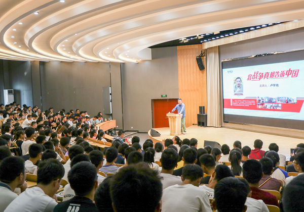 互动环节中,同学们积极提问、踊跃交流、掌声不断,现场气氛热烈,不时掀起阵阵高潮。卢宇光针对学生提出的“第一次参与战地报道的感受是什么”“为什么喜欢当战地记者”等问题一一作答。他说,爱国不是一句口号,而是一种实实在在的行为;同学们要树立终身学习意识,全面提高自己综合素质,用自身力量影响和改变他人和社会。