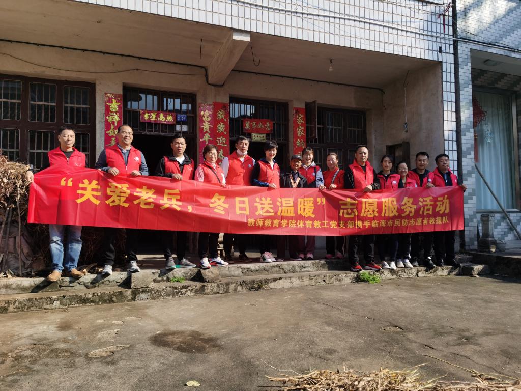 在中国共产党建党一百周年之际,为践行初心使命,引导广大党员同志铭记党的光辉历史,继承和发扬艰苦奋斗的革命精神,教师教育学院体育教工党支部携手临海市民防志愿者救援队前往临海小芝镇、东塍镇走访慰问抗战老兵,为他们送去了温暖和祝福。