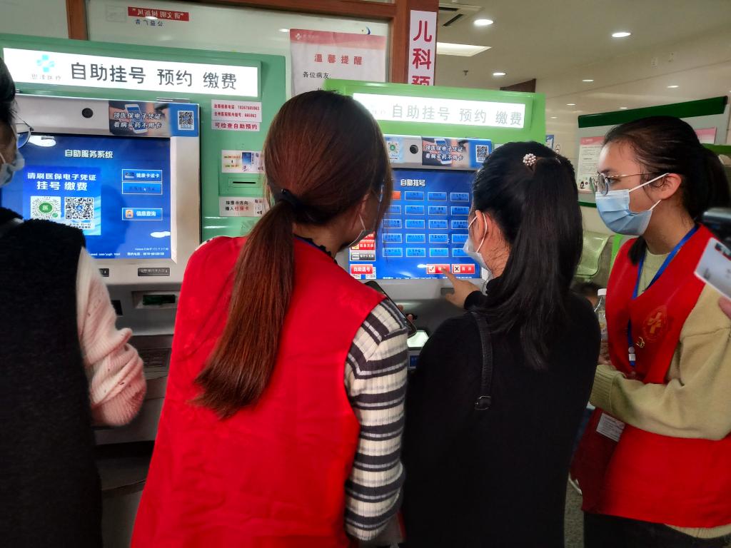 学生党员们身穿志愿者红马甲,胸前佩戴党徽,精神饱满地投入工作。在门诊大厅进出口,志愿者帮助维持医院秩序,指引就医路线;在自助机旁,志愿者协助患者完成取号、挂号、缴费、打印相关凭证与化验单等项目,为患者节约了就诊时间;在医院道路旁,志愿者对吸烟人员进行文明劝导,为患者营造舒适健康的就医环境;在门诊二楼,志愿者引导医院职工有序进行新冠疫苗第三针接种,并合理疏导患者就诊,维持就诊秩序。学生党员志愿者全程保持积极热情的态度,认真协助医务人员,用心帮助每一位患者,将爱和温暖传递到每个人心中。