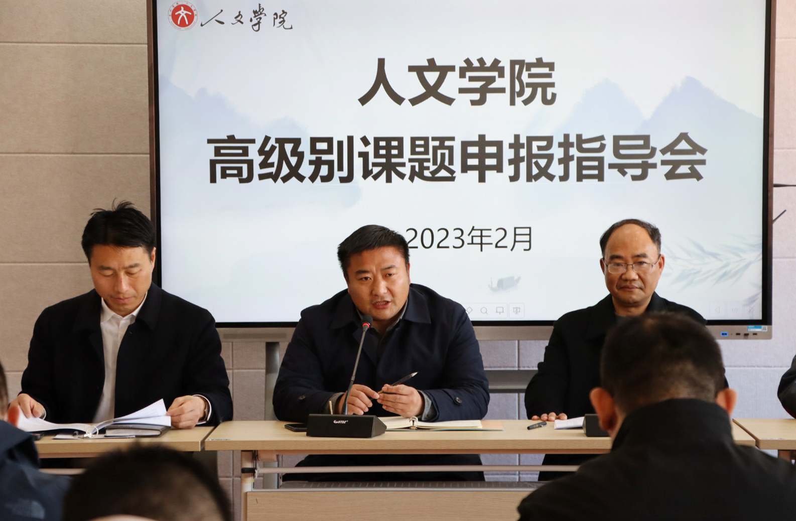 2月15日下午,人文学院举办2023年高级别课题申报指导会。人文社科处处长高平、副处长阮冰琰出席会议,人文学院副院长陈隆升主持,三台学者张京华教授、颜翔林教授及人文学院的全体教授和博士参加会议。