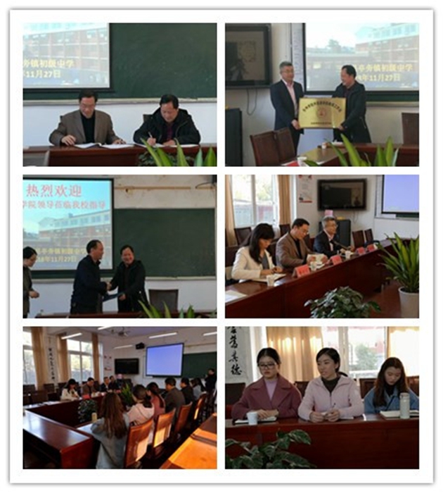 11月27日下午,外国语学院院长刘宏照、党总支书记施安全、英语教育系主任李彬彬及任开兴教授一行,赴三门县亭旁镇初级中学,举行“教授工作站合作协议”和“教育实习基地协议”双签及授牌活动。这是继白云中学后成立的第二个外国语学院教授工作站。三门县教育局副局长李宗田、亭旁镇初级中学校长杨天焕出席签约仪式。