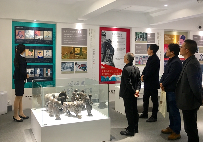 考察组受到了曲师大相关学院领导的热情接待,交流会上,曲师大化学与化工学院领导详细介绍了学院的办学历史和总体情况,并就党建和学生工作方面的具体做法和工作成效作了介绍。双方围绕党建品牌特色、学风建设、学生考研等方面进行了深入探讨和交流。考察组还参观了中国教师博物馆,老师们认真观看了教育文物史料,仔细聆听了工作人员讲解的教育家生平及事迹,教育家们“捧着一颗心来,不带半根草去”的教育情怀深深触动着在场的老师们,激励着他们牢记教书育人的使命和担当,不忘初心,做一名“四有”好老师。