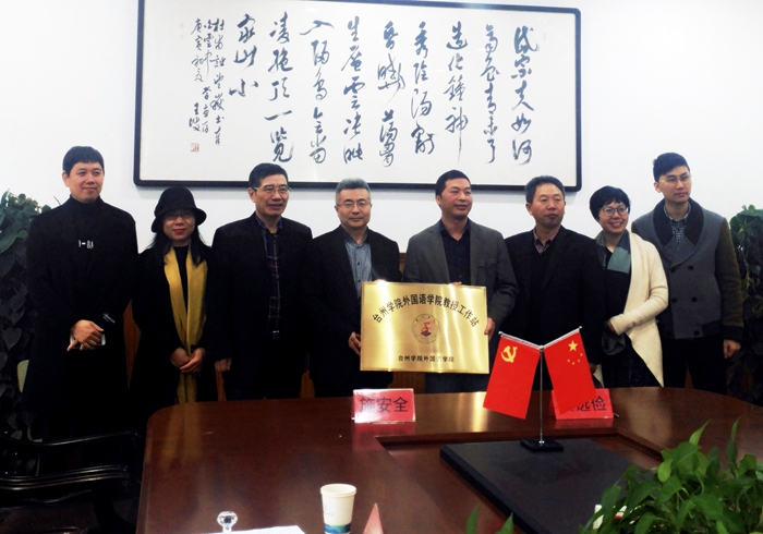 11月21日,外国语学院党总支书记施安全,副院长刘富丽、卢立伟一行赴台州市白云中学出席教授工作站挂牌仪式。椒江区教育教学发展中心主任王学满,白云中学校长虞选俭、副校长曾夏凤、项军及相关教师出席挂牌仪式。