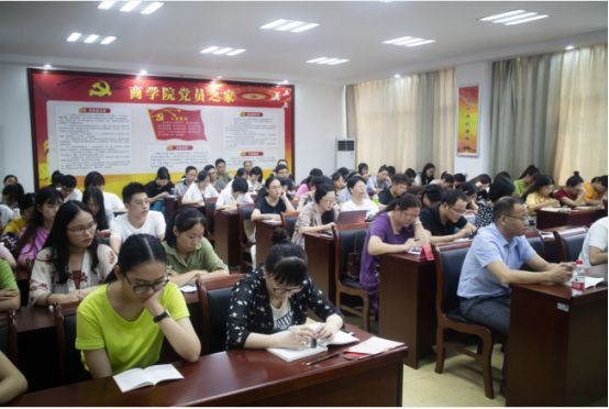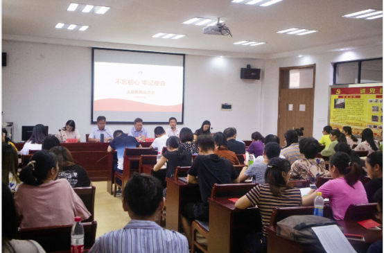 9月12日下午,商学院党总支在学院“党员之家”召开“不忘初心、牢记使命”主题教育动员会。校第五巡回指导组组长、审计处处长潘世杰,联络员李林,学院党政领导及全体师生党员参加会议。