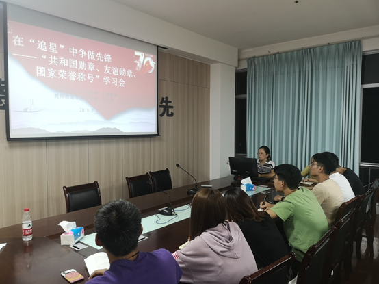 今年9月,国家主席习近平签署主席令,在庆祝中华人民共和国成立70周年之际,授予42人国家勋章和国家荣誉称号。这些称号获得者来自各行各业,他们的事迹和经历感人至深,共和国不会忘记、人民不会忘记他们为中华民族伟大复兴梦作出的杰出贡献。胸怀爱国心,笃行报国志,教育学院学生党员备受感动,大家表示要秉承“中国之星”的力量,志存高远,求真务实,奉献拼搏,勇于创新,在实际学习和生活中争做先锋,充分发挥党员的先锋模范作用,为学校“一三五”发展努力奋斗,为共和国明天添砖加瓦。