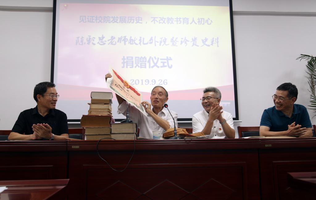 陈老师在捐赠仪式上说,虽然现在过起了退休生活,但心一直和学院在一起,看到学院在学校的大力支持下建设得越来越好,师生努力奋斗、积极向上,他觉得幸福和温暖。捐赠这些史料,一是希望物尽其用,二是更是希望通过这一行动,呼吁更多外语学子、校友关注关心学院的发展,用实际行动支持帮助学院。