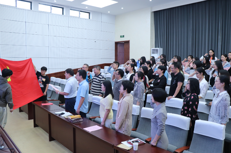 “我志愿加入中国共产党,拥护党的纲领,遵守党的章程……”全体党员师生在学院党总支书记周全宝的领誓下重温入党誓词,旨在进一步增强党员主体意识、奉献意识、先锋模范意识。