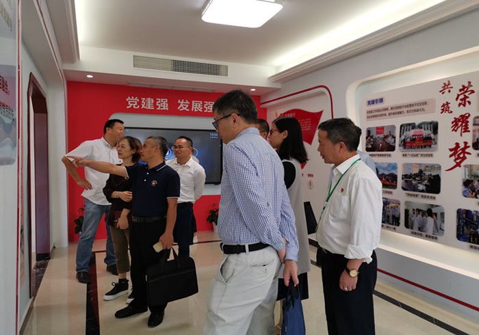 浙江荣耀生物科技股份有限公司党支部书记郑庆安与学院党总支理论中心组成员交流讨论党建工作。