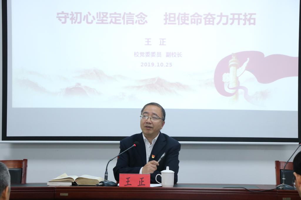 为深入推进“不忘初心、牢记使命”主题教育,10月25日上午,副校长王正应邀为图书信息党总支全体党员作“守初心坚定信念,担使命奋力开拓”专题党课报告。校图书信息党总支书记杨跃民主持党课。