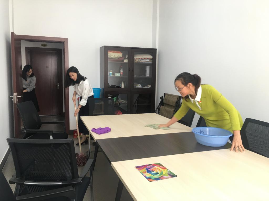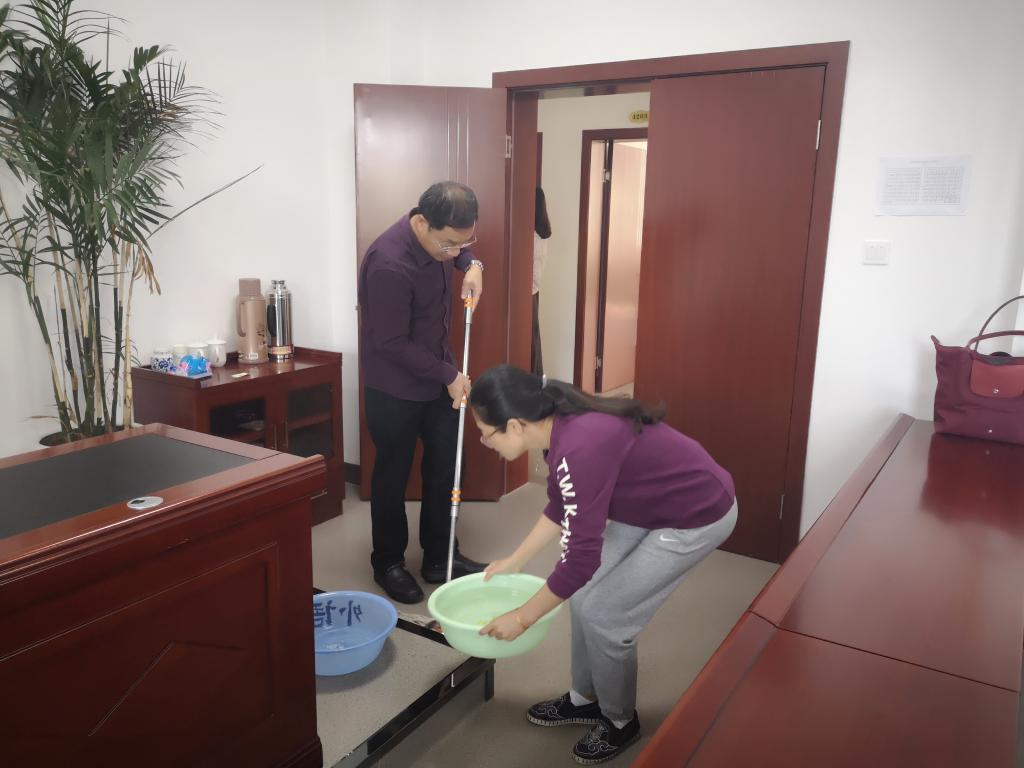 全院师生党员以支部为单位分四支队伍,领取劳动工具,分工打扫临海校区4号教学楼。从架空层到办公室区,从公共空间到室内环境,党员师生积极参与,擦桌子、拖地,齐心协力耐心打扫,展现出饱满的热情。大家有的一手持畚箕一手拿扫帚、有的提水、有的倒垃圾,用心打扫每个角落,把学院当成自己的家。四号楼的教室、办公室、架空层变得干净整洁。
