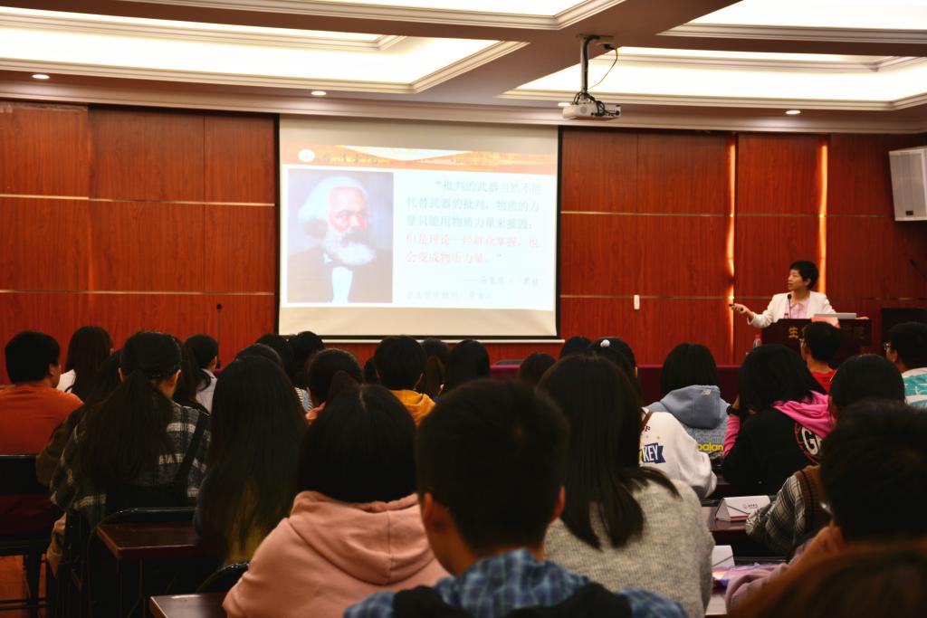 徐敏从开展主题教育的必要性、主题教育的目标要求和如何在主题教育中受到洗礼三方面展开。首先从十九大报告解读出发,强调开展主题教育的四大点必要性:是新时代中国特色社会主义思想武装全党的迫切需要、是推进新时代党的建设的迫切需要、是保持党同人民群众血肉联系的迫切需要、是实现党的十九大确定的目标任务的迫切需要。重点阐述主题教育“守初心、担使命,找差距、抓落实”的总要求,希望同学们通过主题教育,理论学习有收获,知道8个“明确”、14条“基本方略”;思想政治受洗礼,进一步增强“四个意识”、坚定“四个自信”、做到“两个维护”;干事创业敢担当,勇于面对“四大考验”、“四大危险”和5个“凡是”挑战;为民服务解难题,正确处理公私、义利、是非、情法、亲清、俭奢、苦乐、得失的关系。