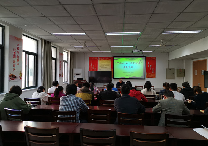 10月31日下午,医化学院党总支举行主题教育第三次专题党课报告会,院长吴劼为学院教工第一党支部党员作“不忘初心、牢记使命”专题党课报告。