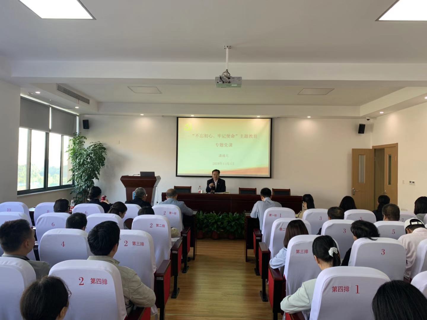 潘通天副书记首先深入阐释了开展“不忘初心、牢记使命”主题教育的重大意义,阐明以“加强党的政治建设”为题的原因。他结合近期学习调研,从全面深入领会党的政治建设的内涵、特点、重要性,全面深入把握加强党的政治建设的主要任务和加强党的政治建设的保障措施三个方面展开深入讲解。强调新时代加强党的政治建设是一项艰巨而长期的政治任务,要求党员师生认真学习、学深悟透,切实提高政治站位;学院党总支要统筹推进调查研究,增强实效性,补短板、明措施,以“不忘初心,牢记使命”主题教育为契机,全力推进党的政治建设,把各级党组织建设得更加坚强有力,为学院发展提供坚强政治保障。