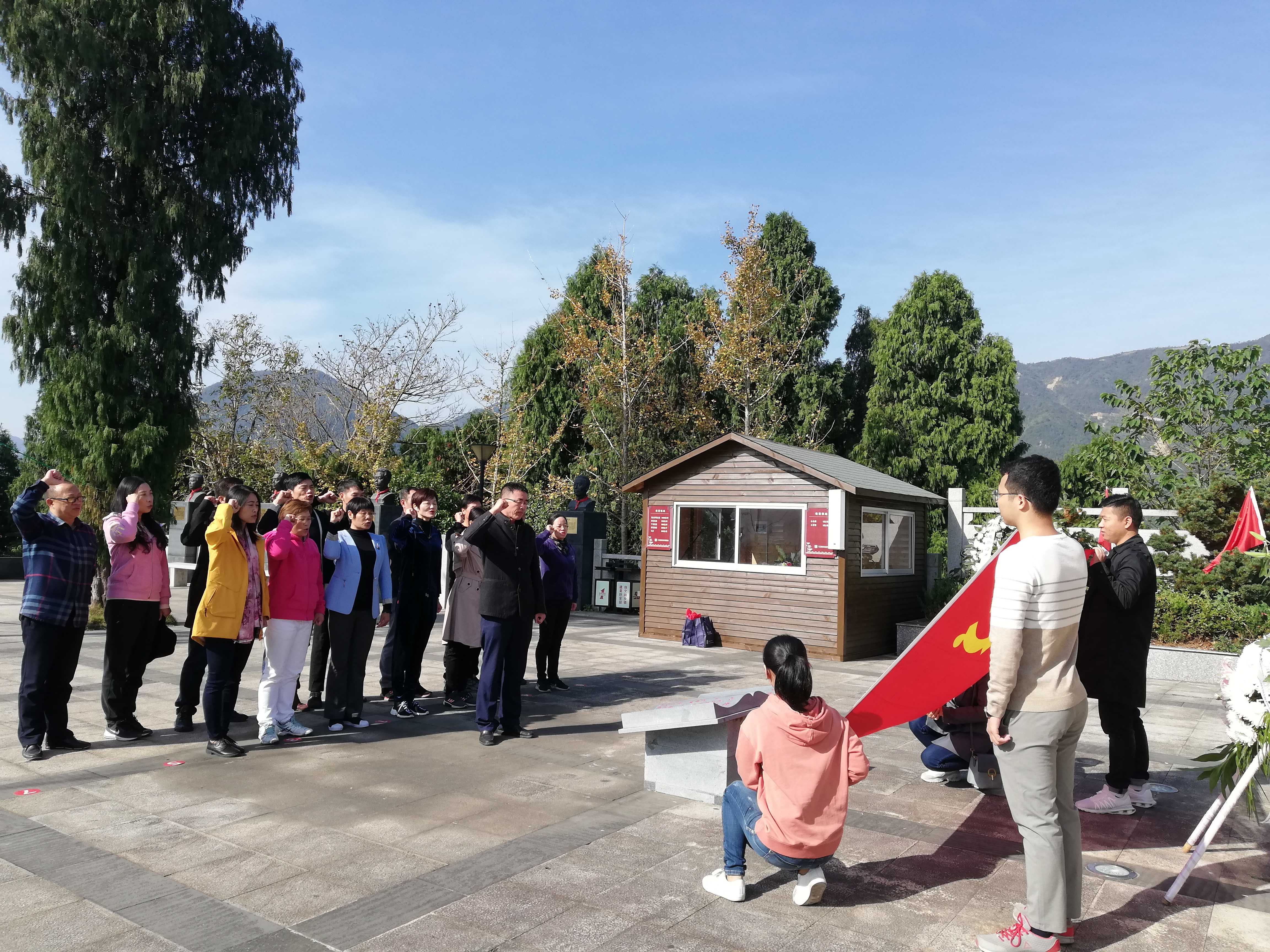 11月10日,教师教育学院教工党支部赴三门亭旁开展“不忘初心,牢记使命”主题党日活动。