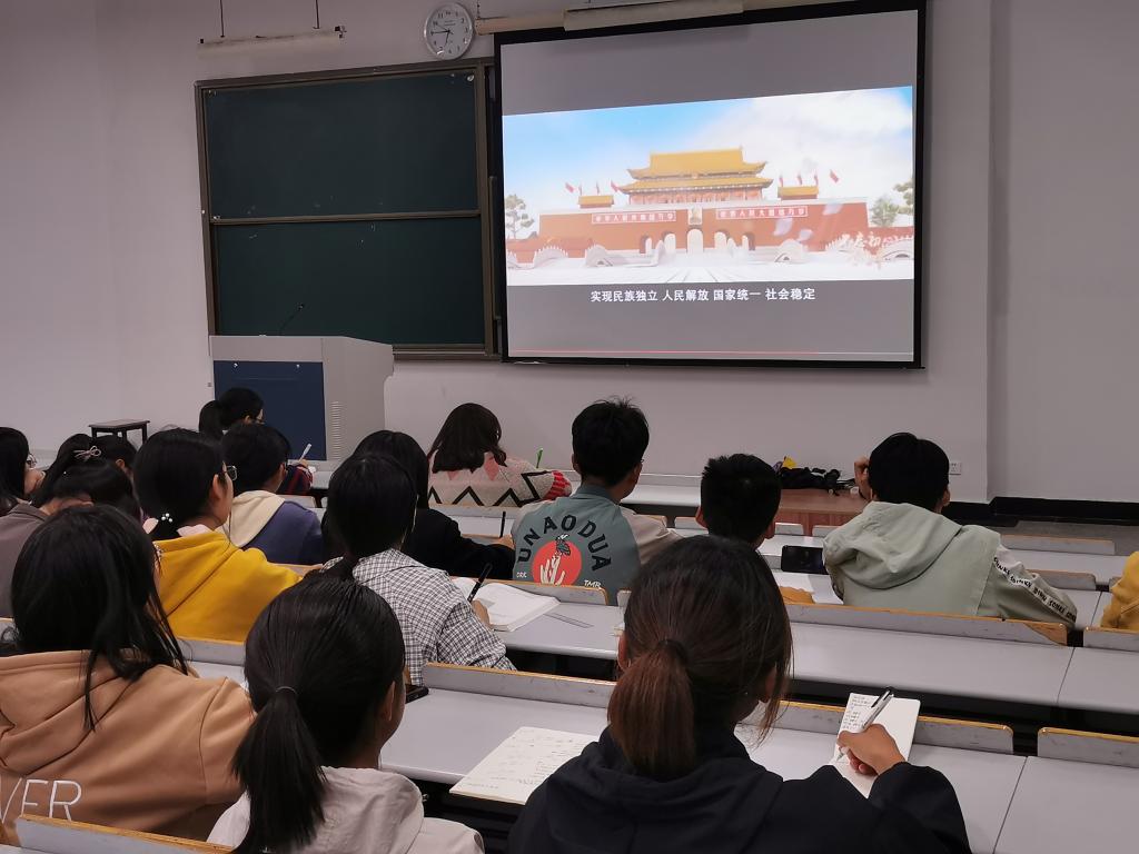 电教片《不忘初心学党章》以十九大新修订的党章为主要内容,从党章的足迹,与时俱进的指导思想,性质宗旨与使命,增强“四个意识”,做到“两个维护”,走好新征程,打铁还需自身硬,不忘初心、继续前进等八个方面对党章的发展历程、党章的重大意义、新时代中国共产党的历史使命等进行了讲解剖析,带领学生更好的学习理解党章。影片内还节选了历史上具有划时代意义的一些片段,如中国人民共和国的成立毛泽东同志的发言等等,激昂的音乐与宏大的中国蓝图结合,使在场不少同学身临其境,倍受鼓舞,激动地涨红了脸。