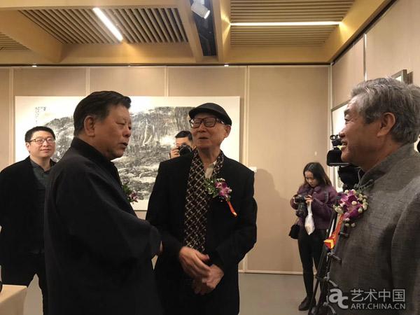 胡振民(左)、邵大箴(中)光临王天民(右)书画展开幕式