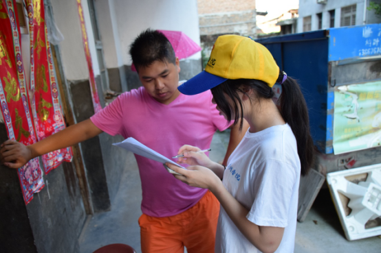 暑期实践队员在进行调查问卷以及相关政策的宣传