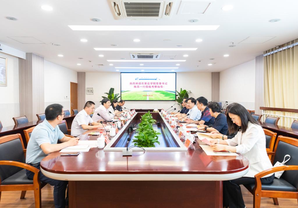 6月3日上午,石家庄学院党委书记陈亮一行来校考察交流,我校党委书记朱坚主持座谈会。