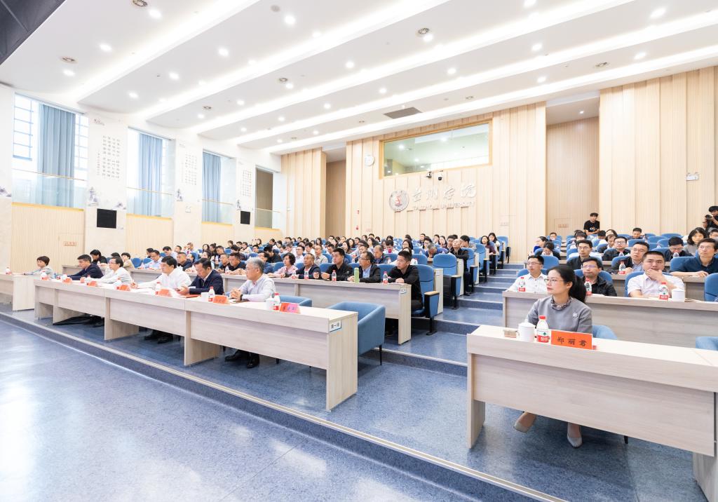 校领导、全体中层干部、党支部书记代表参加辅导报告会。