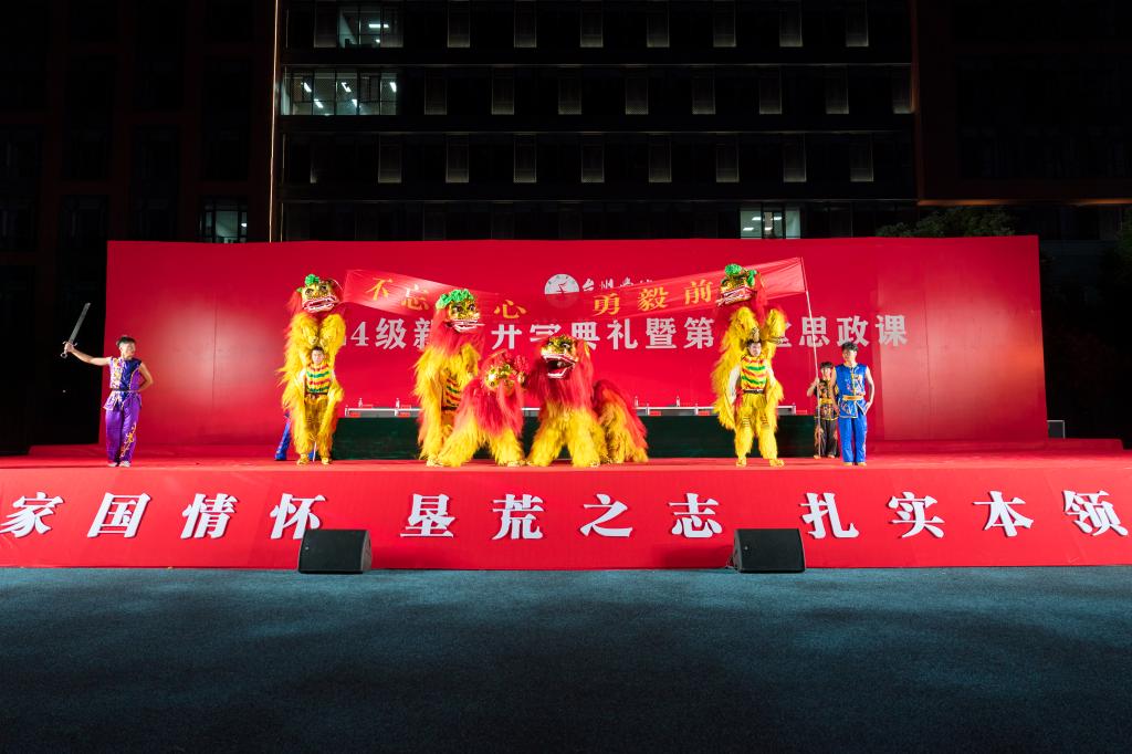 开学典礼前,人文学院、艺术与设计学院、教师教育学院学生还为现场的师生们带来了舞龙舞狮、诗朗诵、歌曲串烧等节目表演。