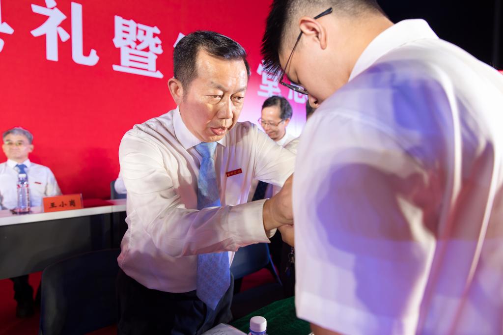 台州学院党委书记朱坚为新生代表佩戴校徽