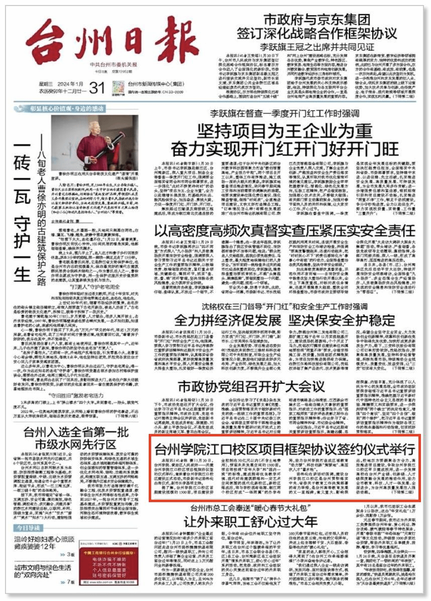 ——发布于2024年1月31日《台州日报》,同时发布于《台州发布》《望潮》客户端