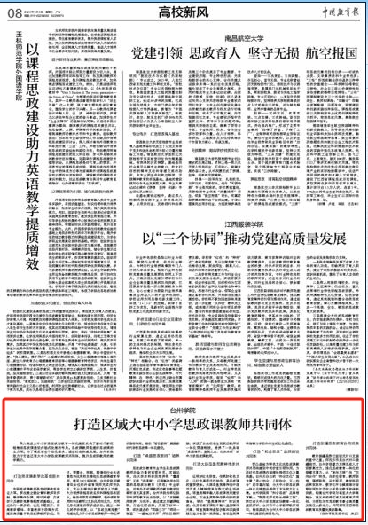 深入推进大中小学思想政治教育一体化建设吹响了新时代新征程推动思政课建设内涵式发展的号角。思政课教师是建好思政课的主力军。为了满足学生个性化需求、适应社会快速发展,台州学院致力于打造区域大中小学思政课教师共同体,提升思政课教师的教学能力。