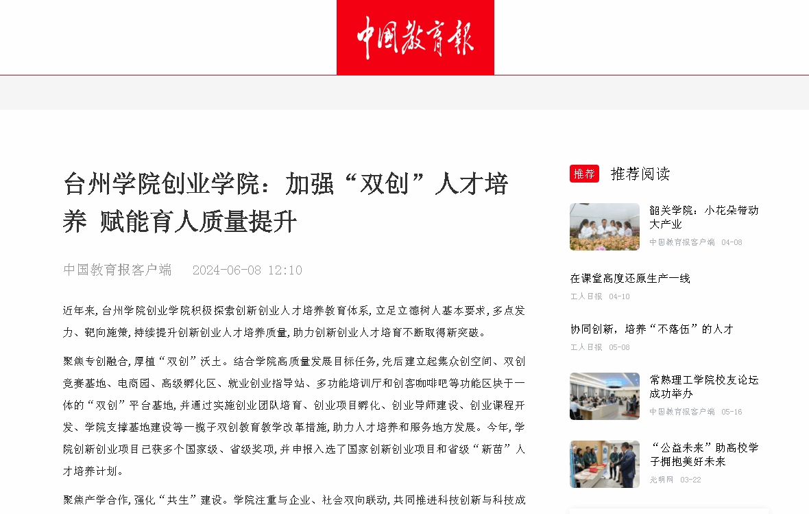近年来,台州学院创业学院积极探索创新创业人才培养教育体系,立足立德树人基本要求,多点发力、靶向施策,持续提升创新创业人才培养质量,助力创新创业人才培育不断取得新突破。