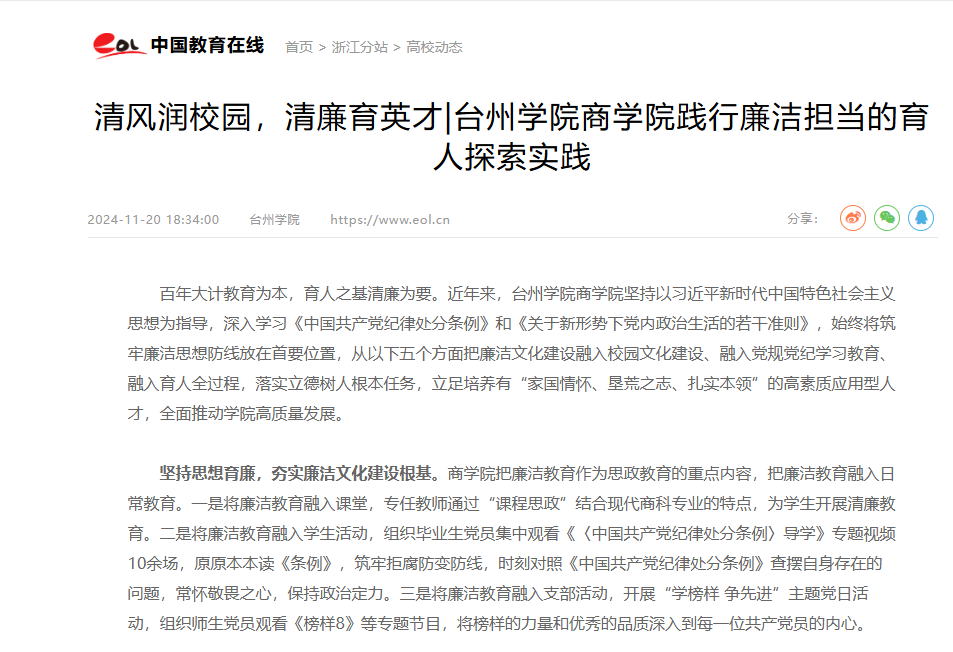 清风润校园,清廉育英才|台州学院商学院践行廉洁担当的育人探索实践
