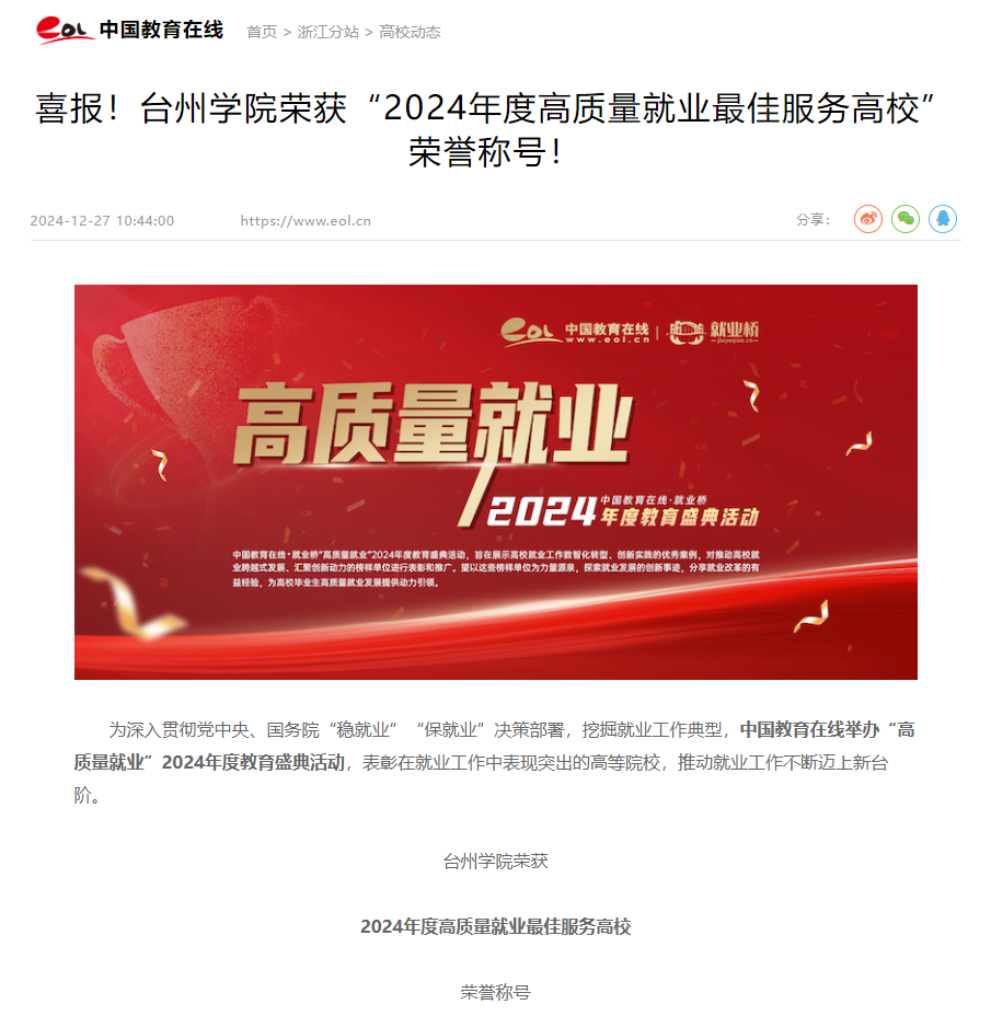 为深入贯彻党中央、国务院“稳就业”“保就业”决策部署,挖掘就业工作典型,中国教育在线举办“高质量就业”2024年度教育盛典活动,表彰在就业工作中表现突出的高等院校,推动就业工作不断迈上新台阶。