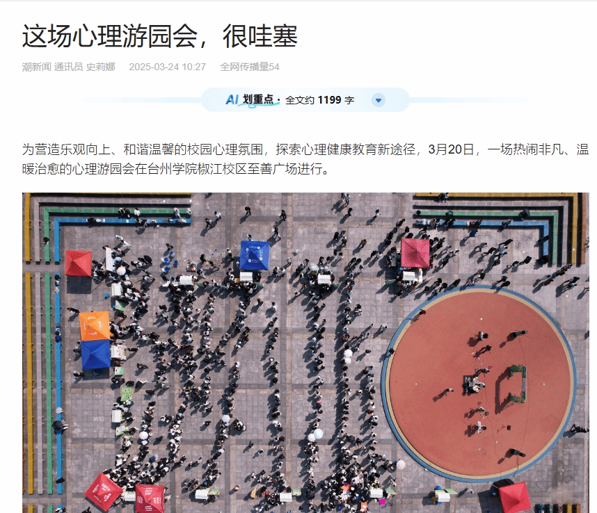 为营造乐观向上、和谐温馨的校园心理氛围,探索心理健康教育新途径,3月20日,一场热闹非凡、温暖治愈的心理游园会在台州学院椒江校区至善广场进行。