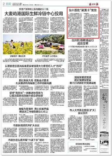 台州首批“聚英卡”发放
