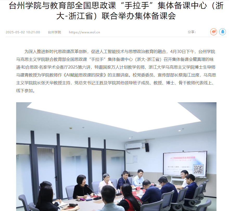 台州学院与教育部全国思政课“手拉手”集体备课中心(浙大-浙江省)联合举办集体备课会