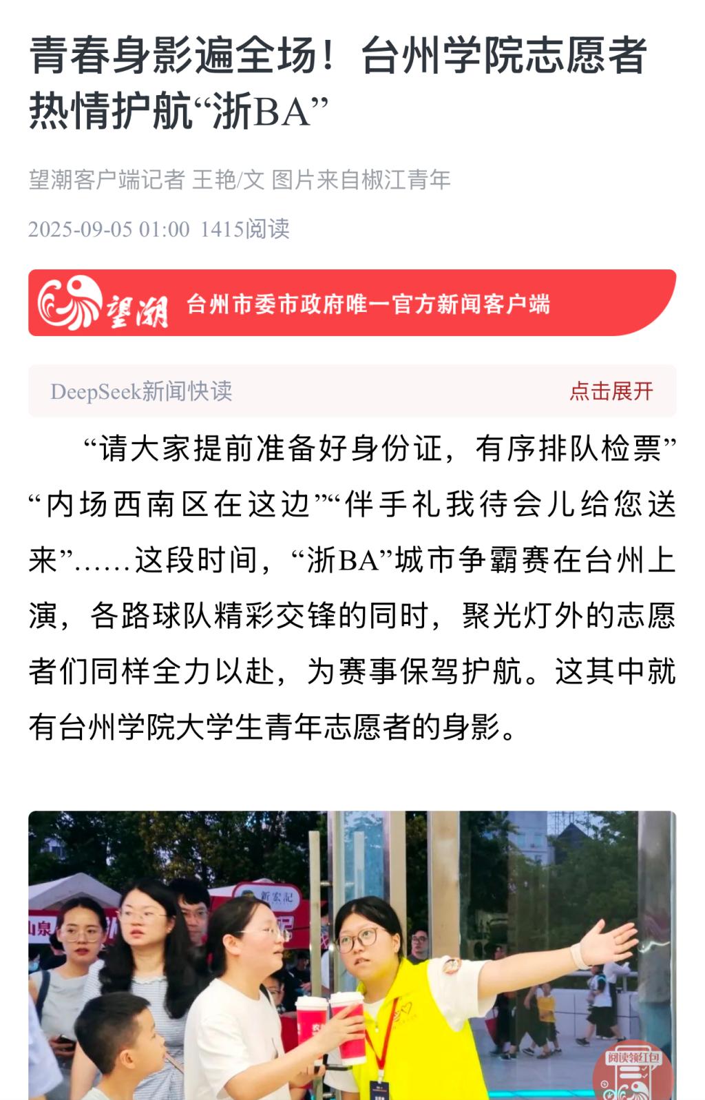 青春身影遍全场!台州学院志愿者热情护航“浙BA”