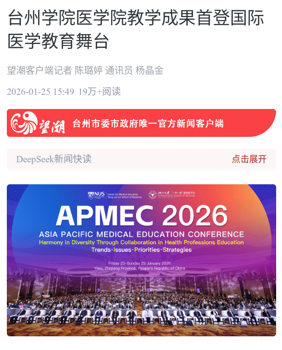 作为一所地方综合性大学的医学院,台州学院医学院此次登上APMEC这一具有重要国际影响力的教育论坛,既是该校长期深耕教学改革的阶段性成果展示,也彰显了地方院校在推进教育现代化进程中的主动作为与开放姿态。