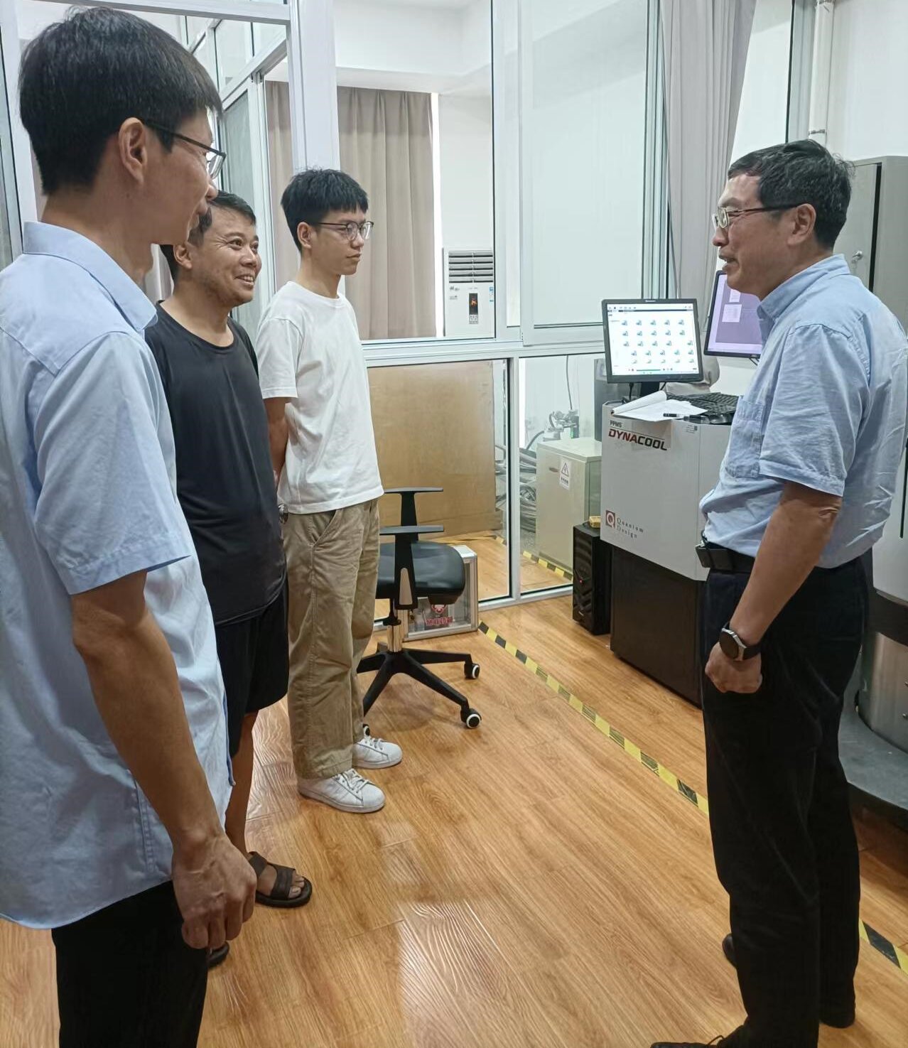 为做好防台风工作,加强学校实验室安全防范,确保暑假期间校园安全稳定,8月2日,党委委员、副校长赵小明带队走访椒江校区部分学院,检查实验室的安全工作并慰问在校从事科研工作师生。科技处、国有资产与实验室管理处相关负责人陪同。