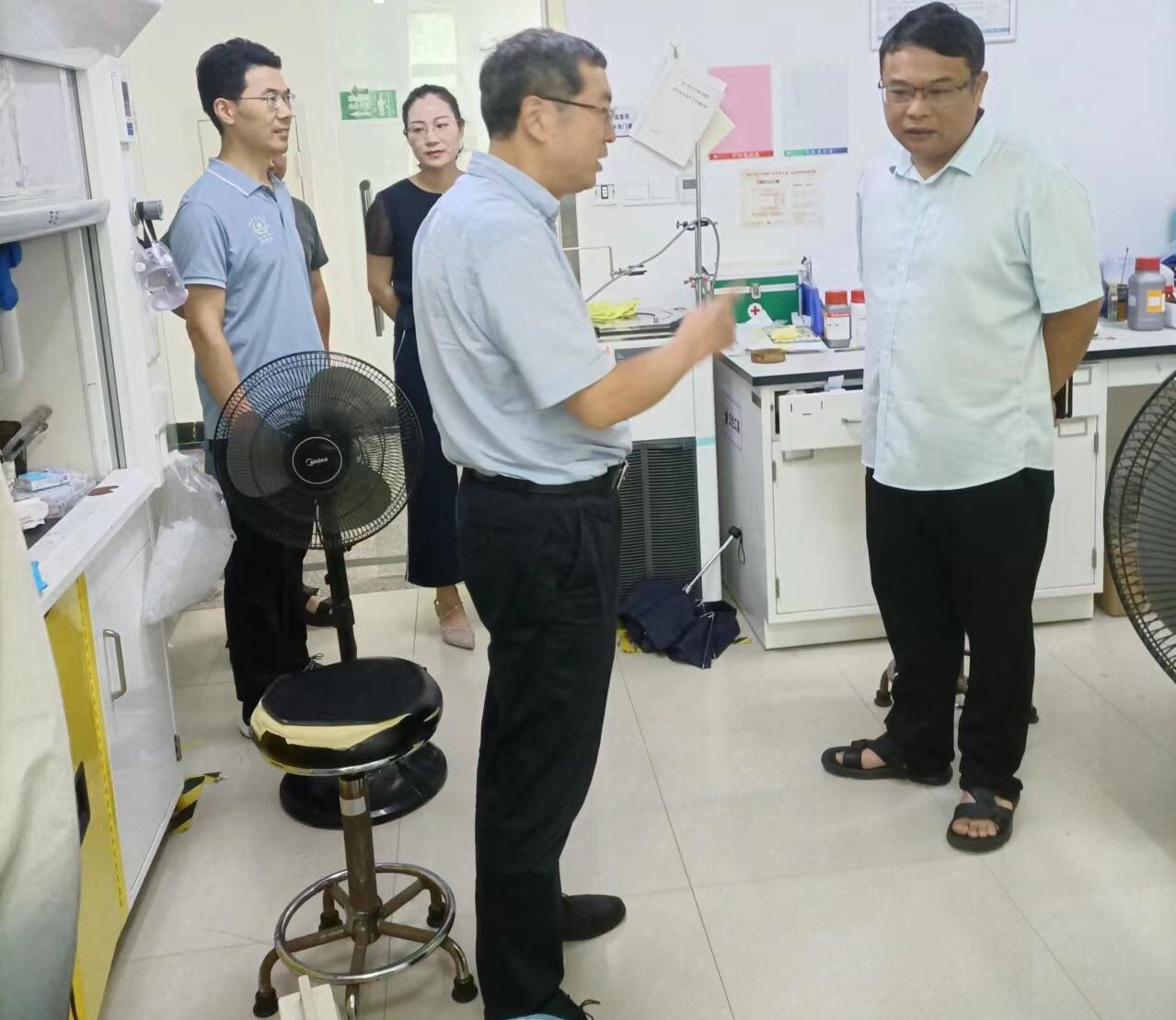 安全检查期间,赵小明看望了材料科学与工程学院、医药化工学院、生命科学学院等学院的教师团队和研究生,与暑假期间坚守岗位开展科研工作的师生进行了亲切交谈,了解了大家科研、学习、工作等各方面情况,对大家放弃休息时间、专心科研工作表示了赞赏和肯定。赵小明对各科研团队取得的成绩表示肯定,对大家为学校事业发展做出的贡献表示感谢,也对青年教师的发展提出希望,并再三叮嘱师生们在开展工作的同时要守牢实验室安全底线,共同维护学校安全稳定工作。赵小明强调,学校快速发展离不开科研“硬核”实力,教师是学校发展的核心竞争力,希望大家在科研上要发扬 “苦干实干”精神,发挥“团队作战”力量, 聚焦自立自强全面增强创新动力,不断取得新的更大成绩。