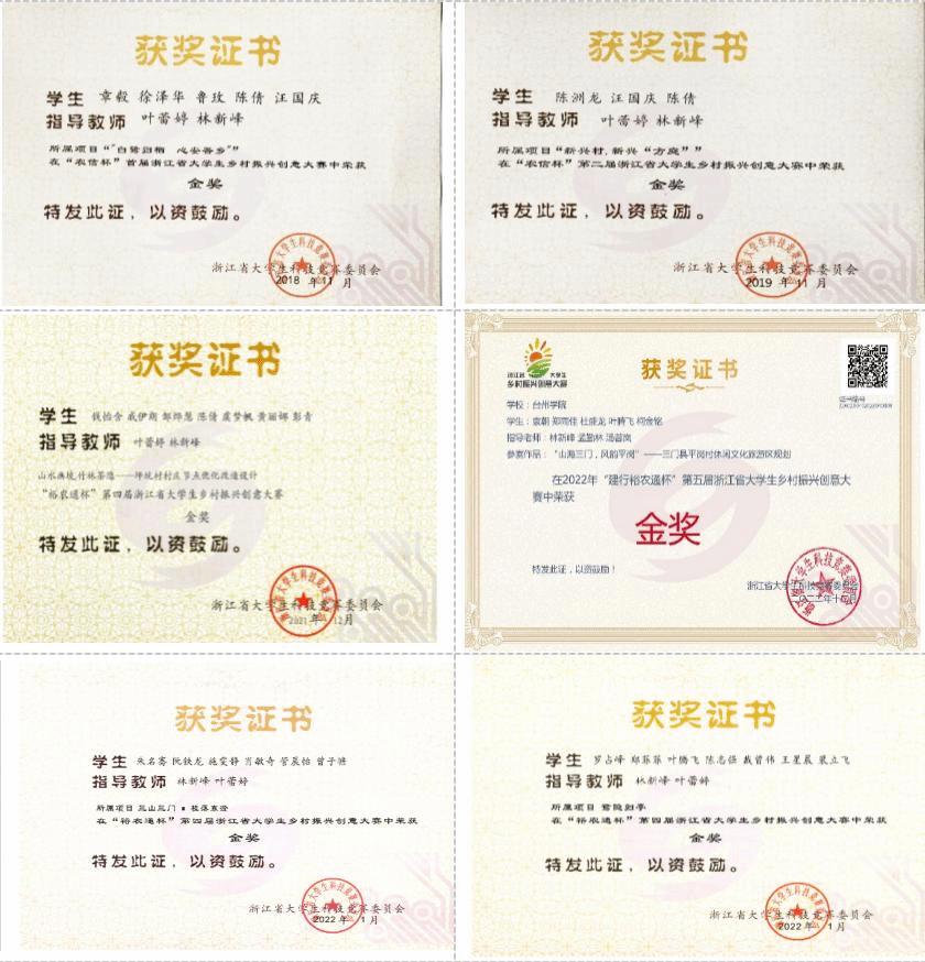 依托大量实践项目以及产学研协同育人,小分队近年来立项十余个课题,包括教育部产学合作协同育人项目“知行合一,多元绿践”——浙东绿色美丽乡村实践基地,浙江省“十四五”教学改革项目“双碳背景下建筑学教赛融合实践研”,台州市哲学社科规划项目“浙东唐诗之路传统聚落与建筑形态研究”、“积极老龄化视角下台州乡村公共空间适老化改造策略研究”,浙江省高校科研计划项目“乡村公共空间的适老化功能模块设计研究”等,发表论文十余篇,指导学生获得浙江省大学生乡村振兴创意大赛金奖6项、银奖6项目、铜奖3项。