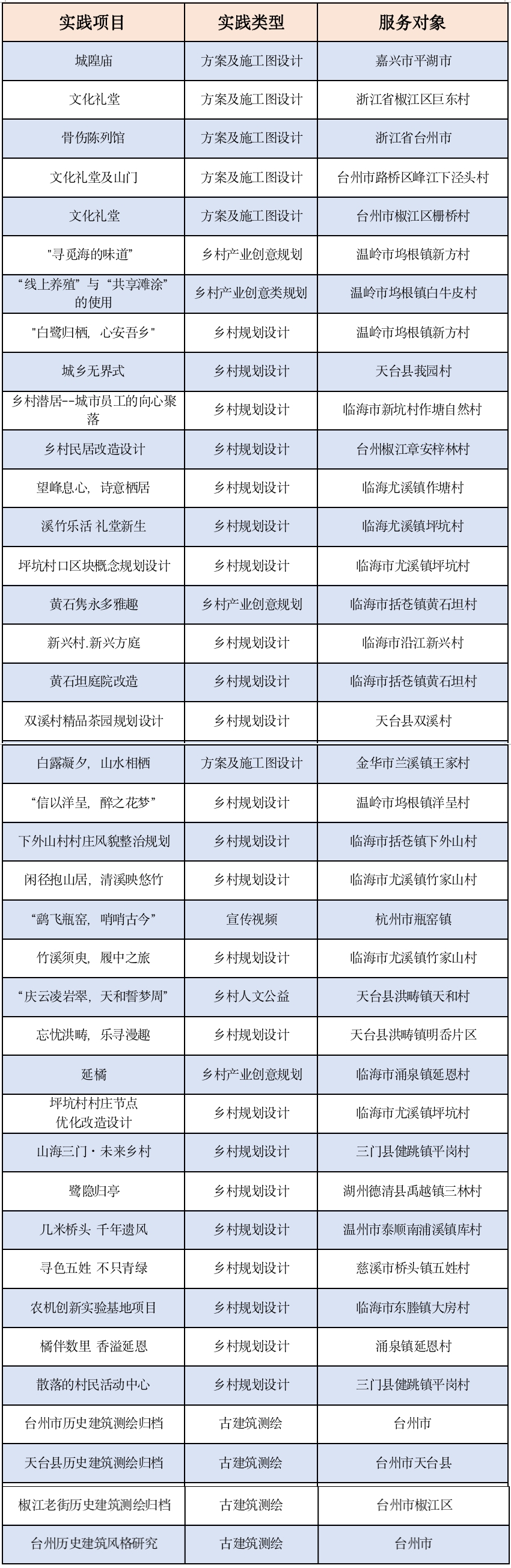 在乡村环境提升以及产业振兴过程中,存在“高端设计请不起,低端方案看不上”的困境。小分队秉承充分发挥人文情怀,结合教学与学科竞赛,公益提供设计方案,扎根乡村,坚持以驻村链接乡村乡情、以助村引领乡风文明、以筑村提升乡村治理,努力打造“一村一景、一村一品、一村一业”的服务成效。自成立以来,小分队始终贯彻“驻村、助村、筑村”理念,足迹遍布台州九个县市区,并辐射省内其他县市区,累计开展地方服务和调研50余次,参与人数300余人次,驻村400余天,累计总里程数两万余公里,实践项目涉及总金额近千万元。其中,台州市历史建筑测绘归档、临海市新兴村庭院改造、临海市黄石坦村庭院改造及产业规划、仙居县广度乡竹建构制作、椒江区传统民居建筑特色及现代转译研究等项目成功落地,广受好评。