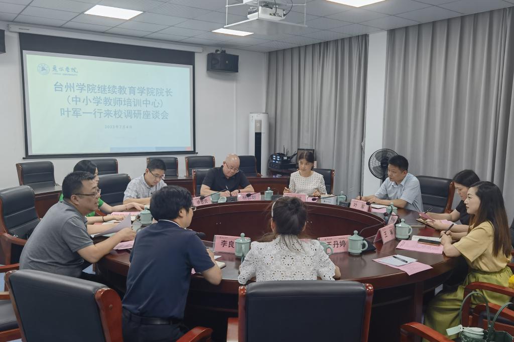 7月4日,继续教育学院院长叶军、直属党支部书记鲍婷婷、地方合作处(继续教育管理中心)副处长阮冰琰等一行6人赴丽水学院继续教育学院开展调研与工作交流。