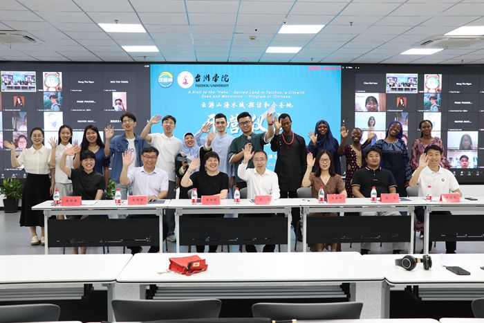 在开营仪式结束之际,现场的老师、同学共同与屏幕前的海外学员们挥手致意,欢迎他们走进中国、走进台州、走进台州学院。