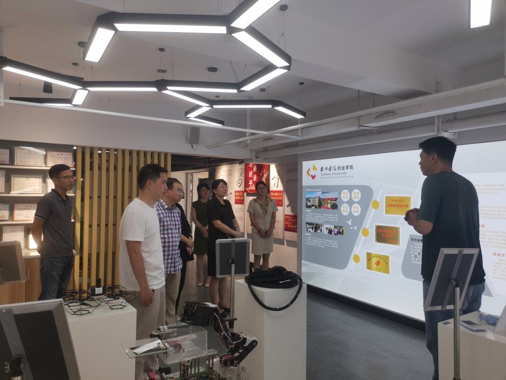 6月29日,台州市市级创业孵化示范基地评审小组来我校椒江校区大学生创业园实地评审。台州市财政局一级主任科员梅临强、台州市就业服务中心副主任陈雯婷、台州科技职业学院教授李莉、浙江方远电子商务发展有限公司经理叶程、台州市就业服务中心葛小华作为专家评审参加考察。创业学院院长周瑶、副院长李银丹陪同。