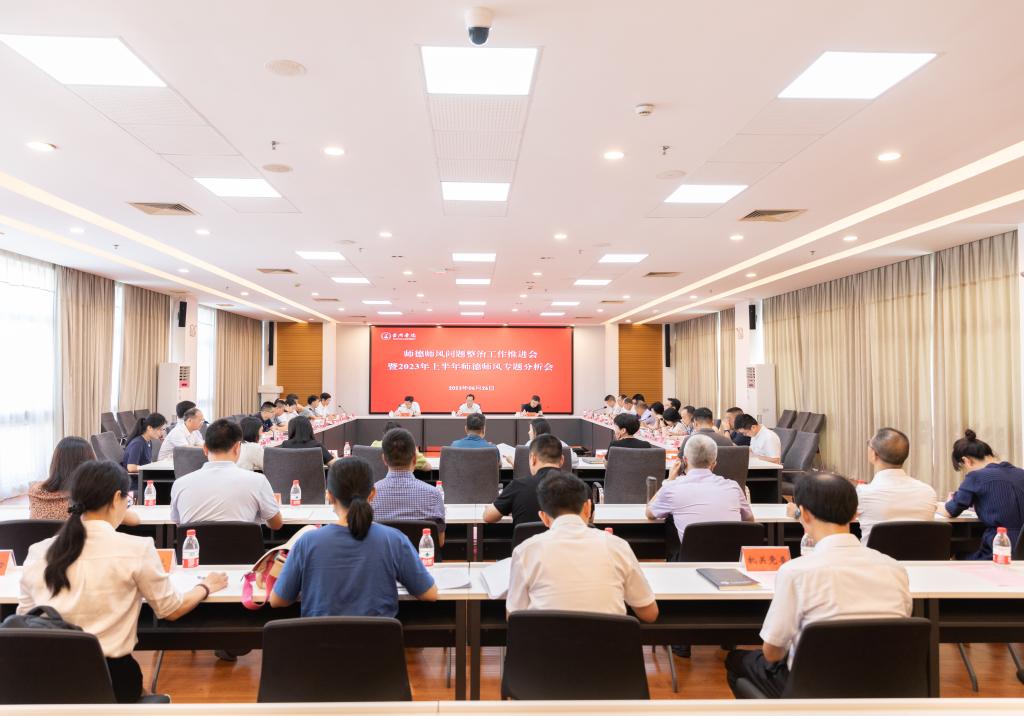 6月26日上午,我校在椒江校区行政楼第二会议室召开师德师风问题整治工作推进会暨2023年上半年师德师风专题分析会。校党委副书记潘通天,党委委员、纪委书记李伟明,党委委员、宣传部部长金松出席会议并讲话。各二级党组织书记、职能部门负责人参加会议,会议由教师工作部部长王金宝主持。