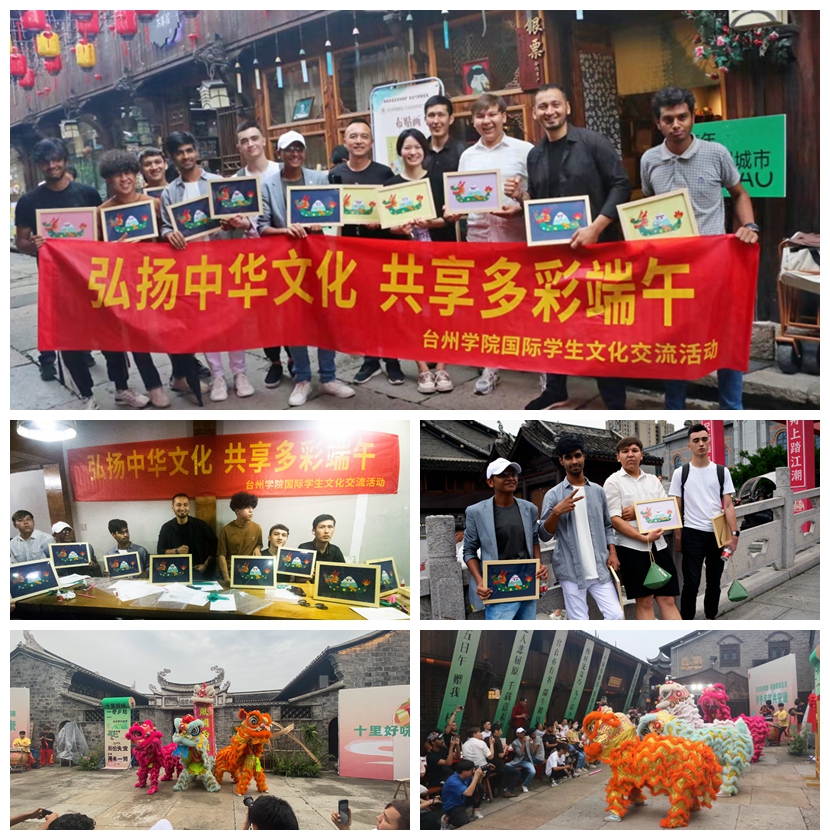 品美食、话佳节,留学生们沉浸在浓浓的节日氛围中。来自孟加拉国的学生MAHMUD HASIB(中文名:叶非凡)说:“中国与我的国家很不一样,来到中国这几个月,我了解了许多中国的历史文化。这次端午节活动我们亲手做了粽子还观看了舞狮表演,是一次非常棒的经历!”来自乌兹别克斯坦的SAPARBAEV KHURSHIDBEK(中文名:杨昊)说到,“我来中国已经四年了,参加过许多活动,但今天的活动让我非常难忘。我们制作了龙舟布贴画,穿着中国传统服饰参观了路桥十里长街,吃了食饼筒还喝到了台州特产洋菜膏。我感到非常高兴!”